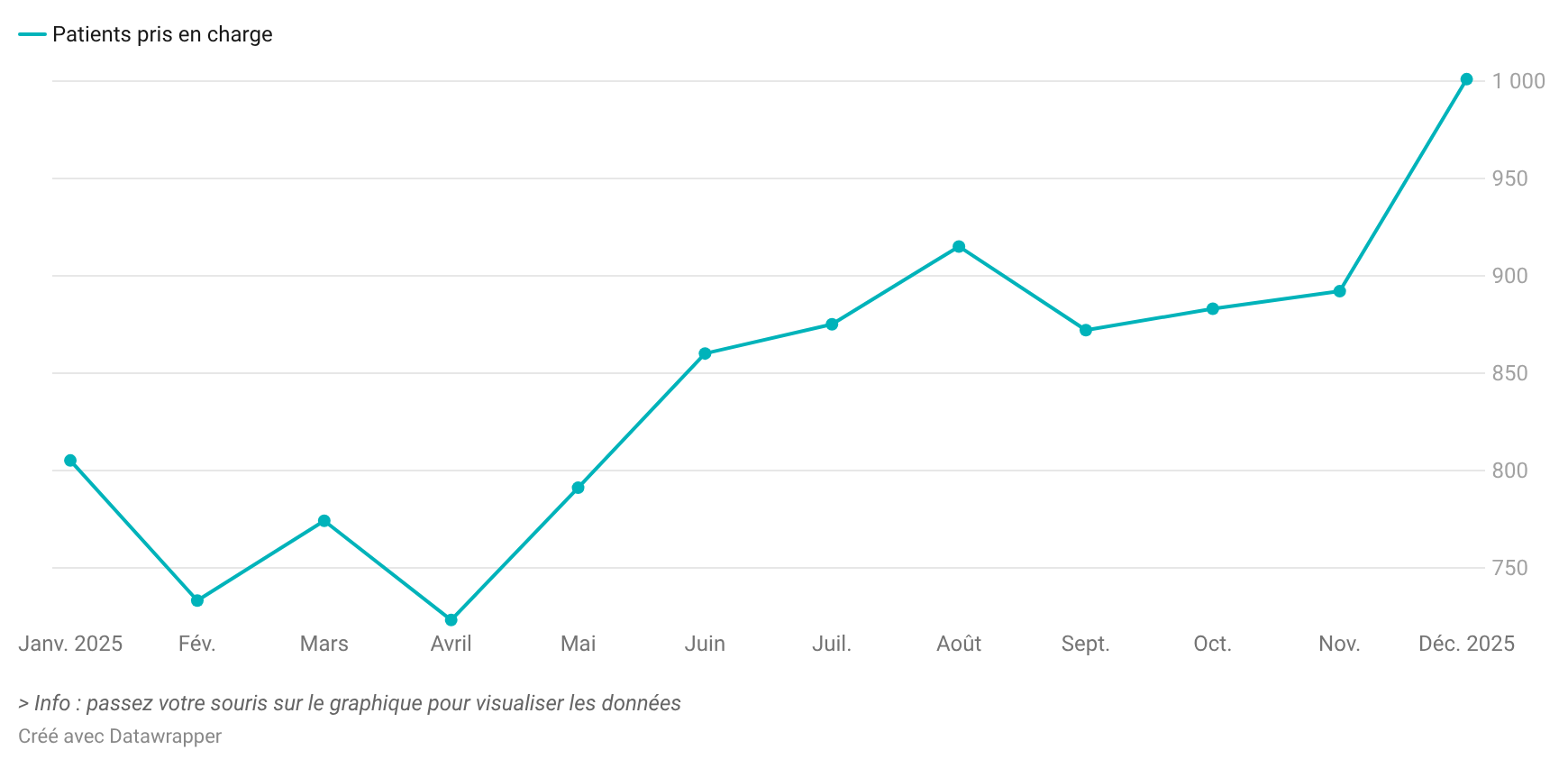 11 structures utilisatrices distinctes, 10 124 patients pris en charge en 2025 :